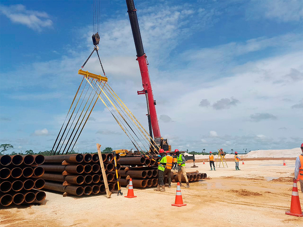 - Fourniture, transport, stockage et installation de 164 739 mètres de pieux en acier pour supporter les fondations des équipements, réservoirs, cuves, supports de tuyauterie et bâtiments de l’usine intégrée NGL de Guyana et du projet de centrale électrique CCGT de 300 MWe.